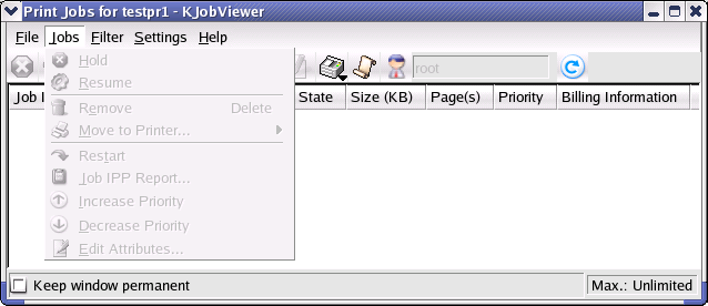 The KDEPrint Job Viewer KJobViewer allows you to view, move and cancel print jobs.