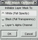 After activating the layer mask, you can draw on it to mask out the layer image. Where you draw on the layer mask with BLACK, the layer image will be made transparent. Where you draw on the mask with WHITE, the image will be made opaque. By using different shades of grey you can make the image semi-transparent. The darker the shade if grey, the more transparent it will become. You may also draw on the layer mask with colors to mask out specific color channels, but we dont need to do that right now. For now we will work with black and white to mask out the image. If you look below you will see in the Layers/Channels dialog box that I'm painting the layer mask black and it is turning the image transparent.