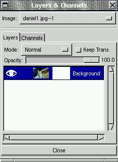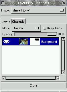 The more opacity a pixel has, the less you can see through it. If a pixel as zero opacity, you can see completely through it, you cant even see the pixel itself. In the Layers/Channels dialog box you'll find the opacity slidebar, and this controls the opacity for the entire layer. If you slide it to the left, the opacity value goes down and you can see through the image. This opacity value controls to what degree the image can be seen through, or in other words, how transparent the image is. What you can do is create multiple layers in an image and have a layer be semi-transparent. If a layer is semi-transparent, you will be able to see through it to the next layer. This can make for some pretty neat effects, but we wont be using it right now. Also, GIMP shows that part of an image is transparent by showing a grey checkerboarded pattern. You will see what I mean when you begin working with transparency.